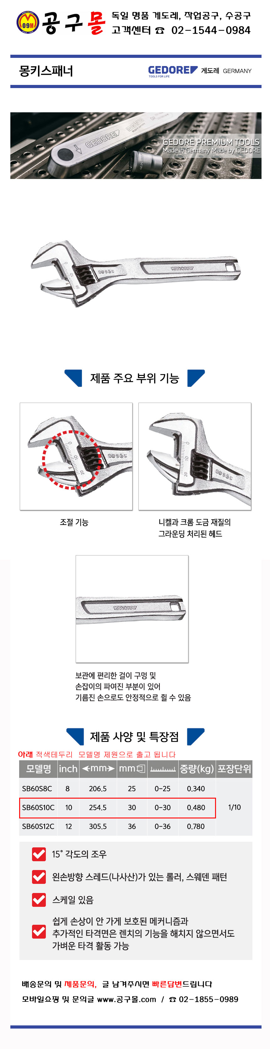 게도레 몽키스패너 SB60S10C, 250mm GEDORE,공구몰,독일공구,101001156191