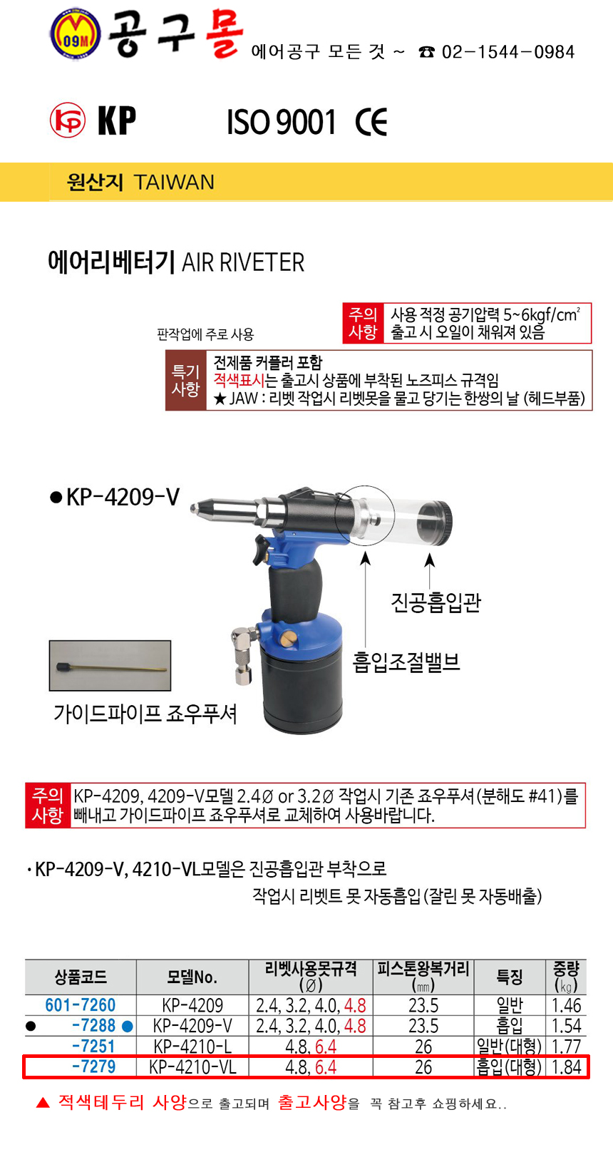 KP 에어리벳트건 KP-4209 (4.8) KP, 알루미늄리벳트건,에어리베트기,KP4209, 6017260