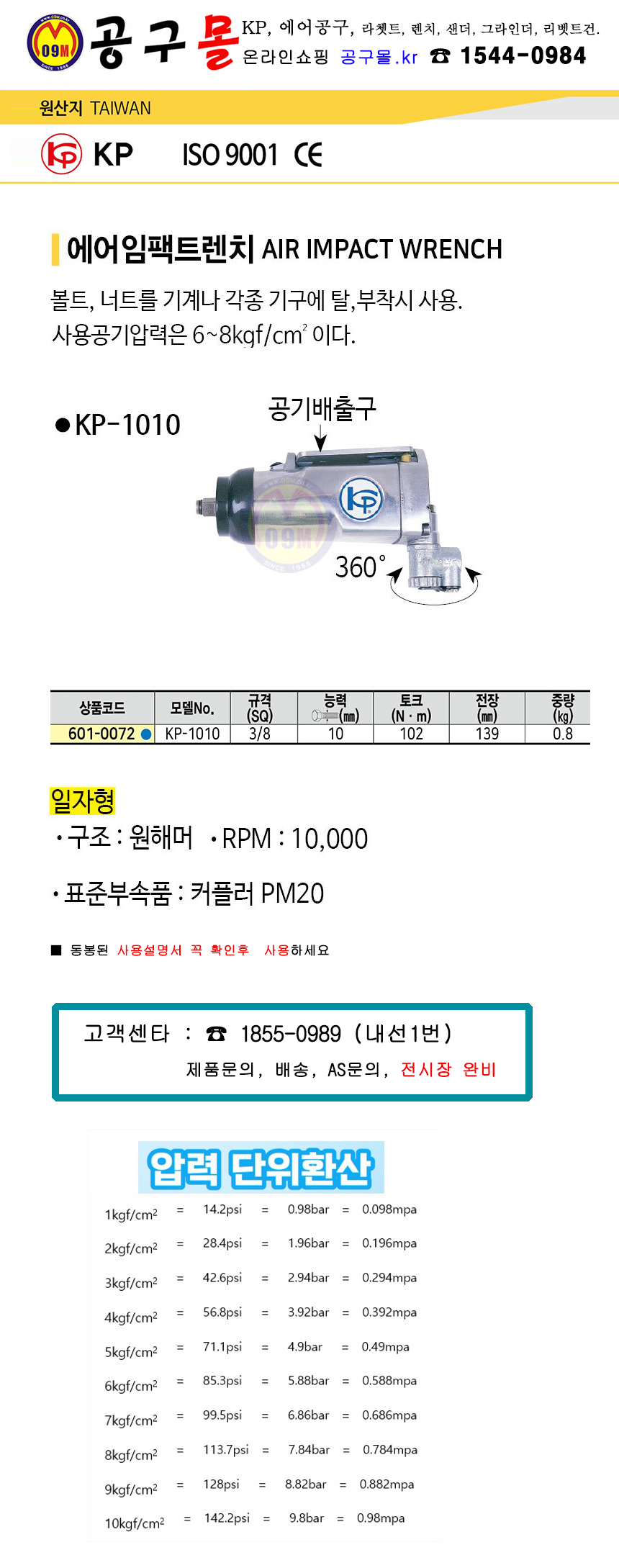 제조사ㆍ원산지 : KP 에어공구 / 대만