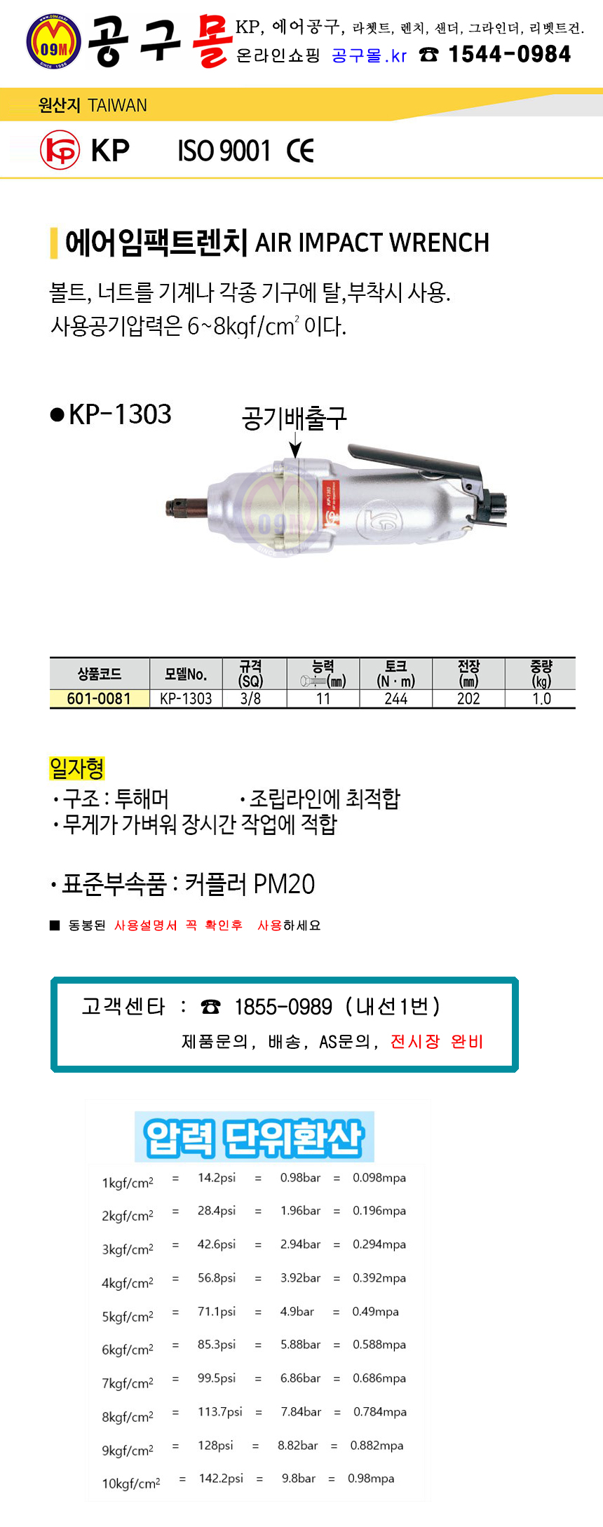 제조사ㆍ원산지 : KP 에어공구 / 대만