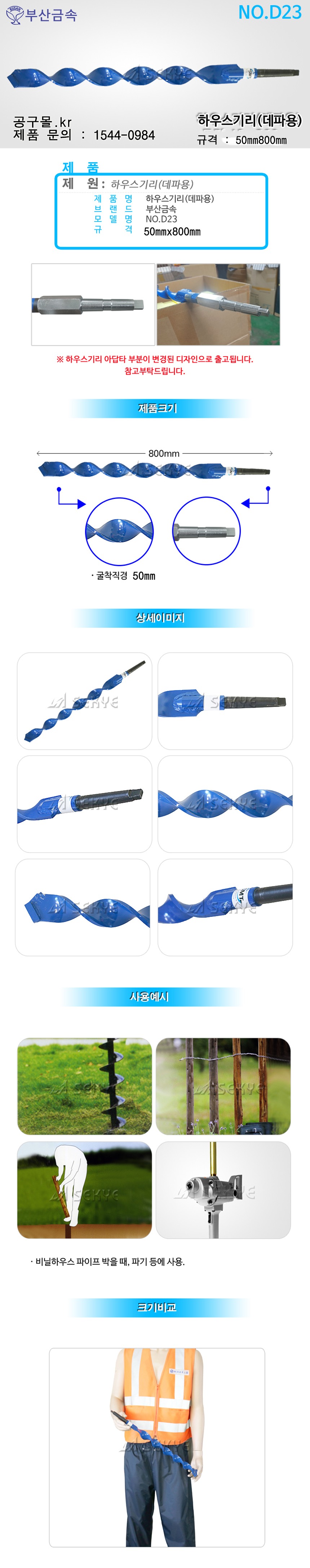 하우스기리(데파용) D23 50x800mm 부산금속, D23타입, 전기드릴용, 땅파기, 파이프길리, 공구몰,120-1088