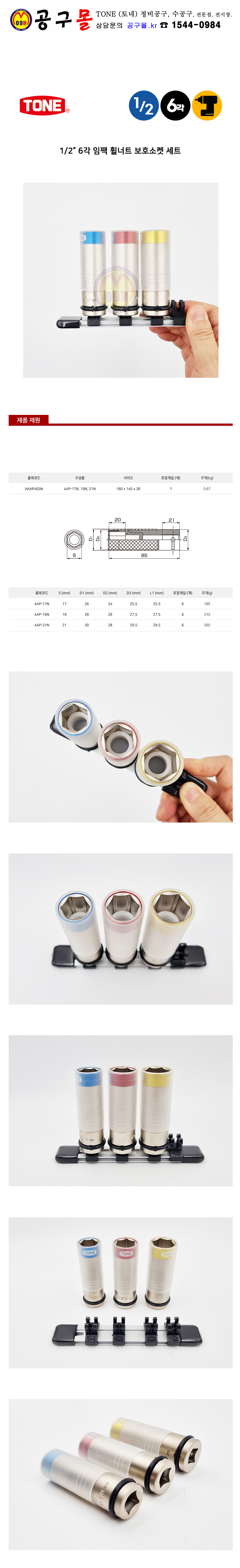 TONE 1/2-6각 임팩 휠너트 보호 소켓(85mm) 4AP-17N/21N (17-21mm) 토네, 복스알, 공구몰