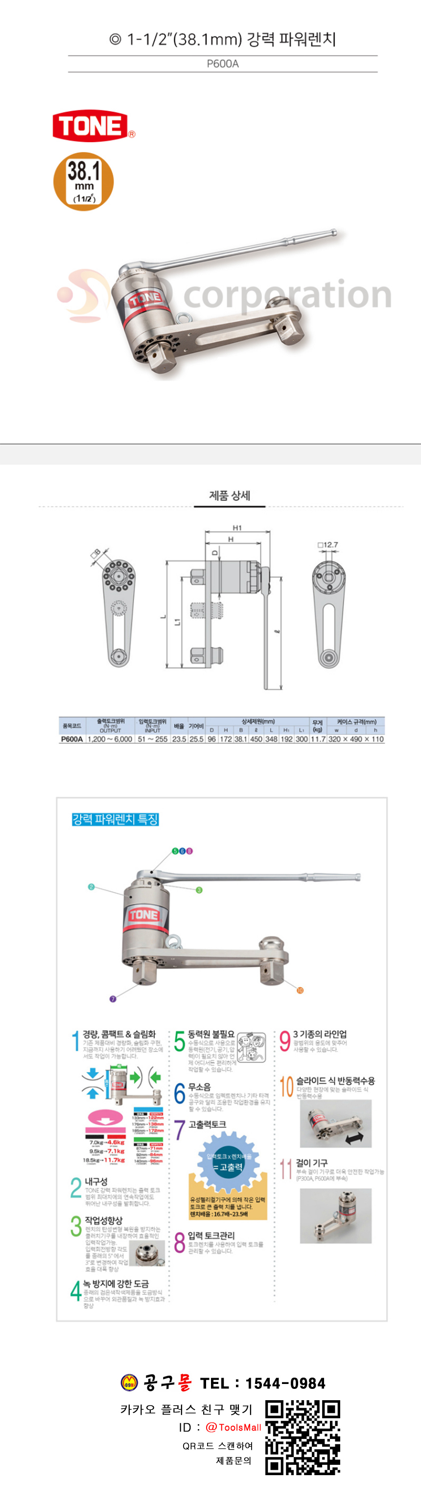 토네 강력 파워렌치 1-1/2 P600A TONE