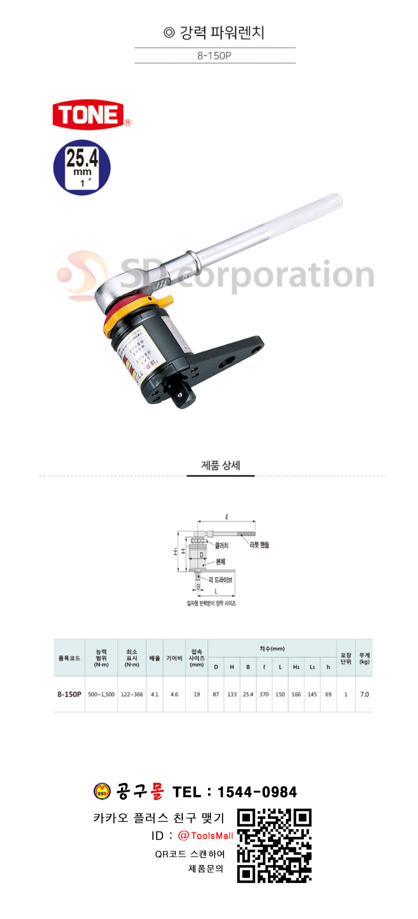 토네 고배율 파워렌치 1(25.4mm) 8-150P TONE