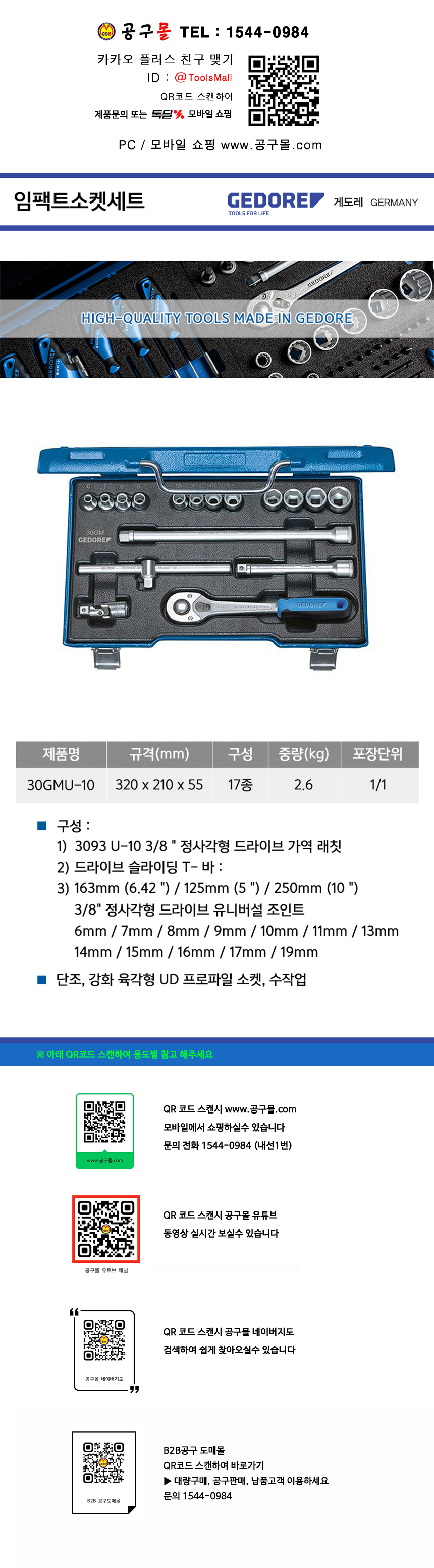 게도레 임팩트소켓세트(3/8) 30GMU-10 17PCS GEDORE 101001140665