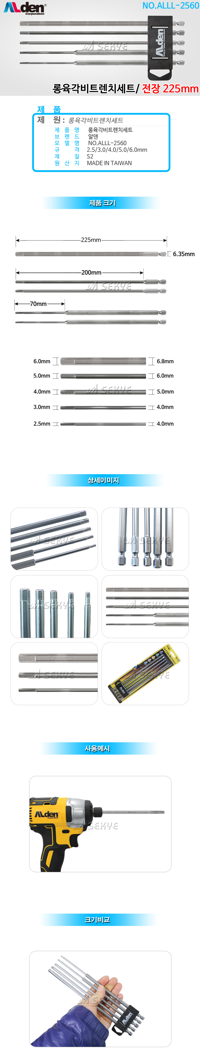 알덴 롱육각비트렌치SET ALLL2560 2.5-6x225mm
