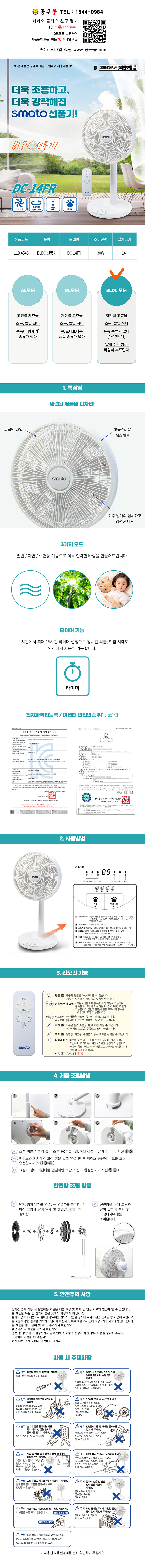 스마토 선풍기(좌석용) DC-14FR 35cm(14) BLDC,리모컨 발터치 울산 공구몰 119-4546