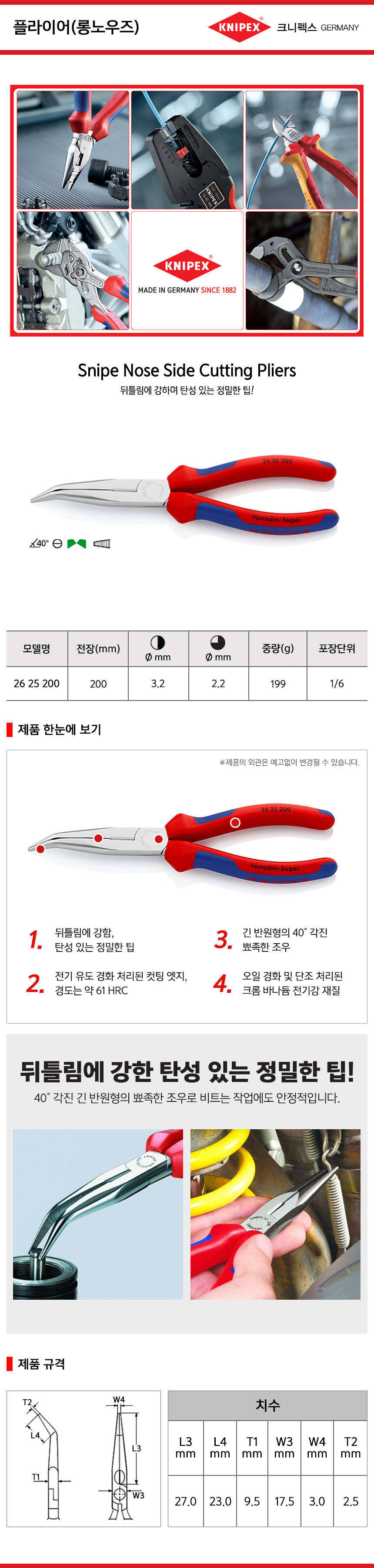 크니펙스 플라이어(롱노우즈) 25-02-140, 25-02-160 Knipex 롱로우즈 공구몰 101001020066