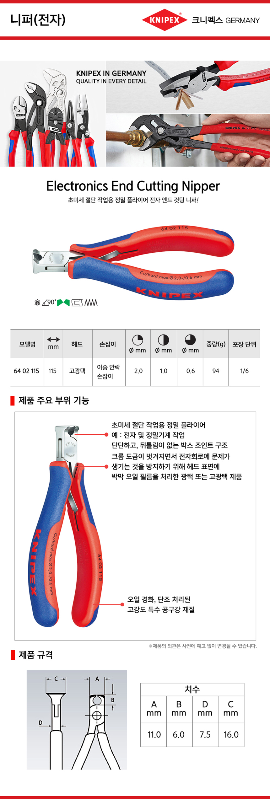 크니펙스 니퍼(전자) 64-02-115 전자니퍼 Knipex 독일공구, 공구몰추천 101001000020