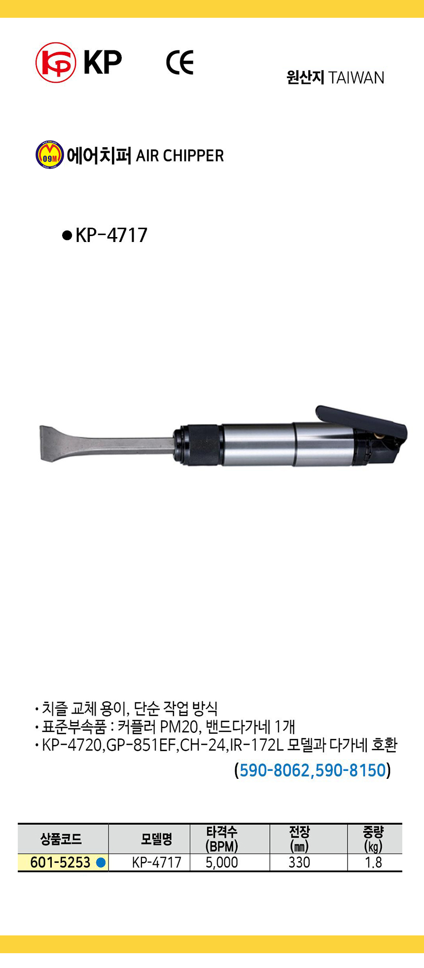 KP 에어치퍼 KP-4717 RPM5000, 330mm, 1.8Kg 에어공구, 에어해머, 다가네 공구몰 601-5253