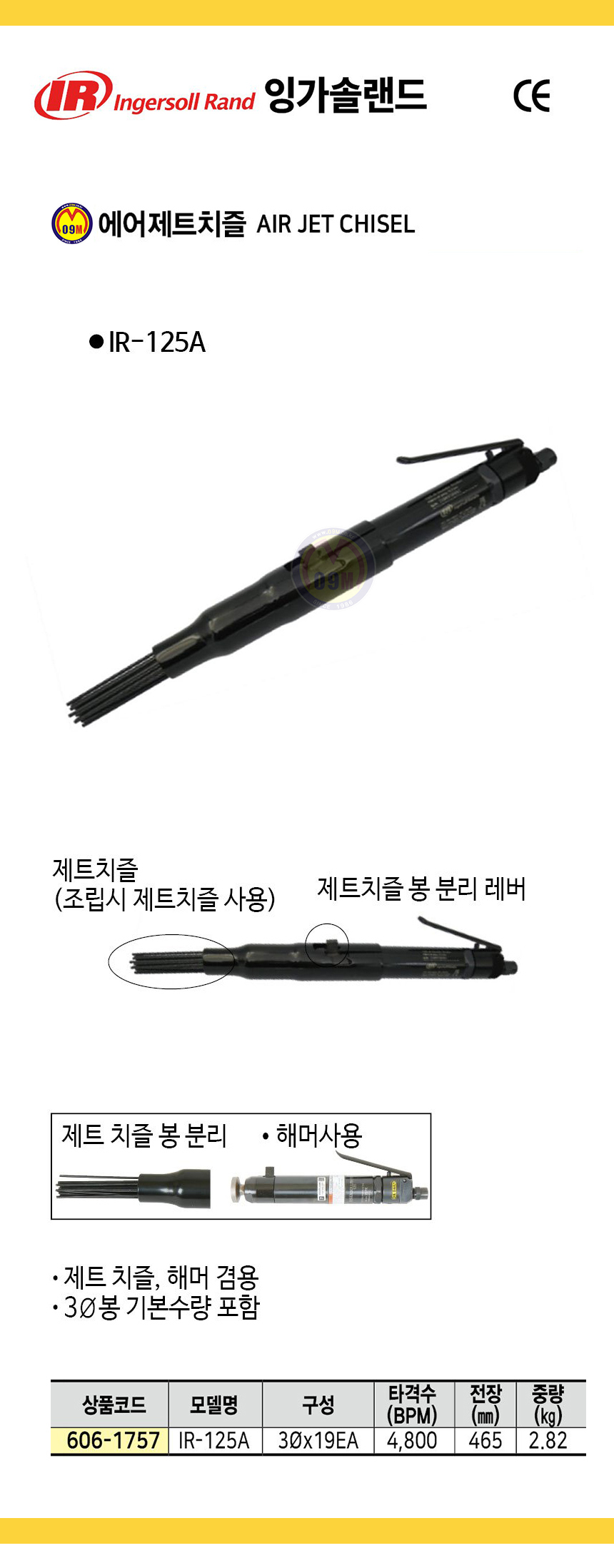 잉가솔랜드 에어제트치즐 IR-125A 에어해머, INGERSOLL RAND 공구몰 추천 C606-1757