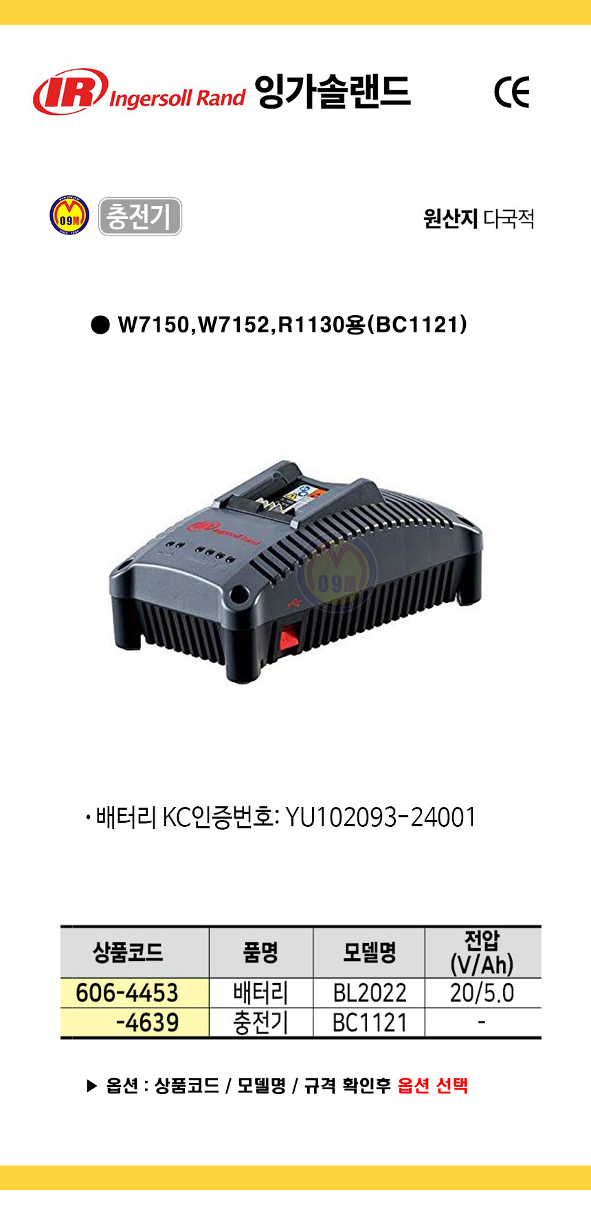 잉가솔랜드 충전기 W7150,W7152,R1130용(BC1121) INGERSOLL RAND 공구몰 추천 C606-4639