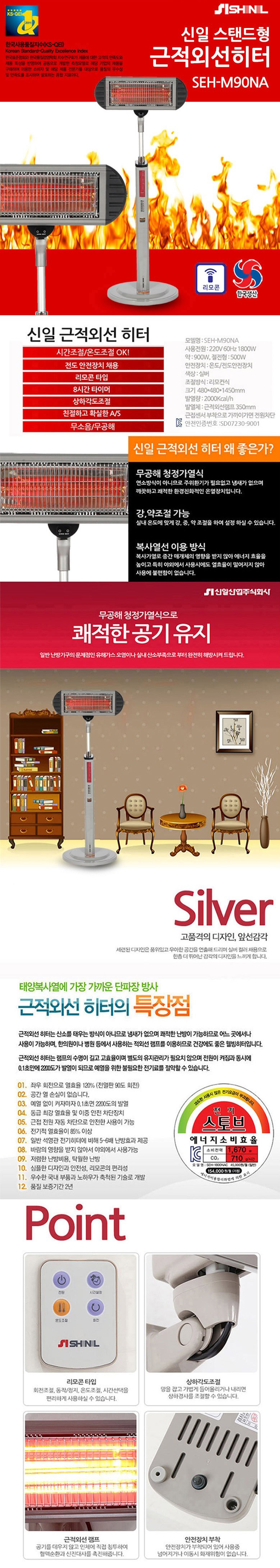 신일 근적외선히터 SEH-M90NA (리모콘) 전기히터, 공구몰, W875-8918