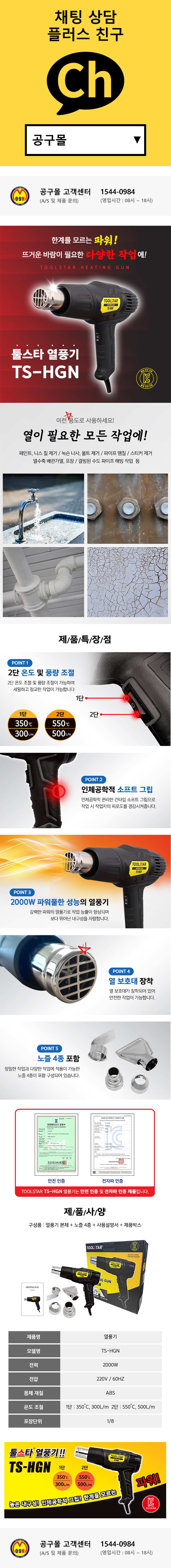 툴스타 열풍기 TS-HGN (2000W-550도) 히팅건