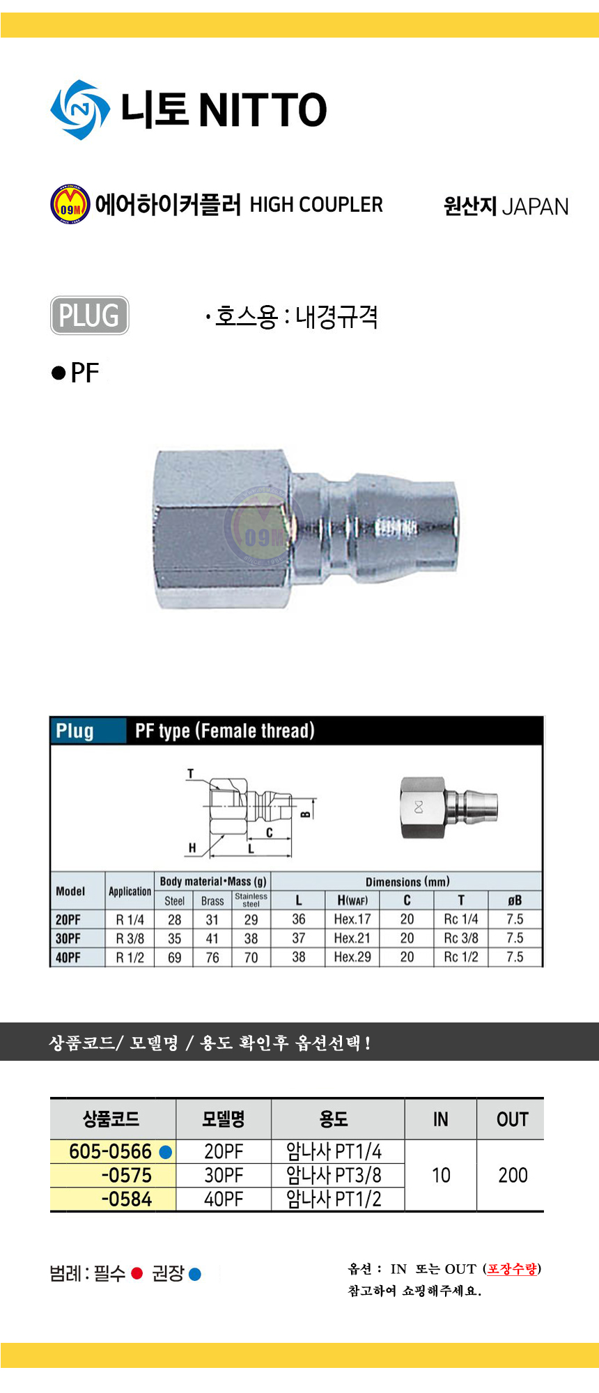 니토 하이커플러(PF) 20PF/ 30PF/ 40PF NITTO 공구몰 PLUG 605-0566
