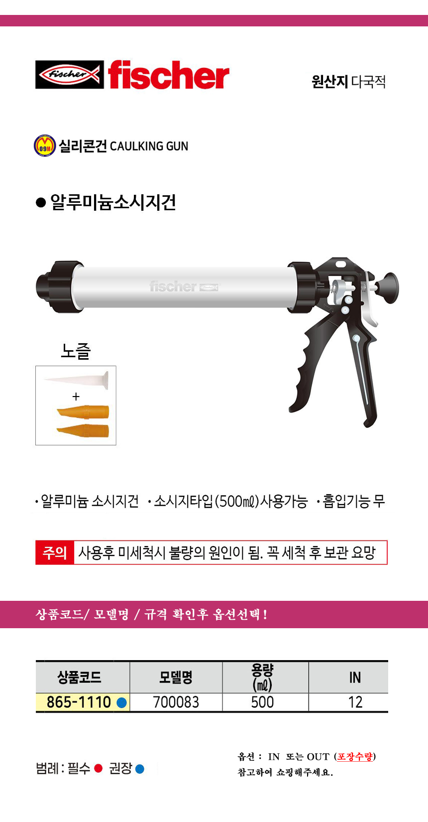 피셔 알루미늄 코킹건 소세지건 / NO.700083 fischer, 공구몰 865-1110