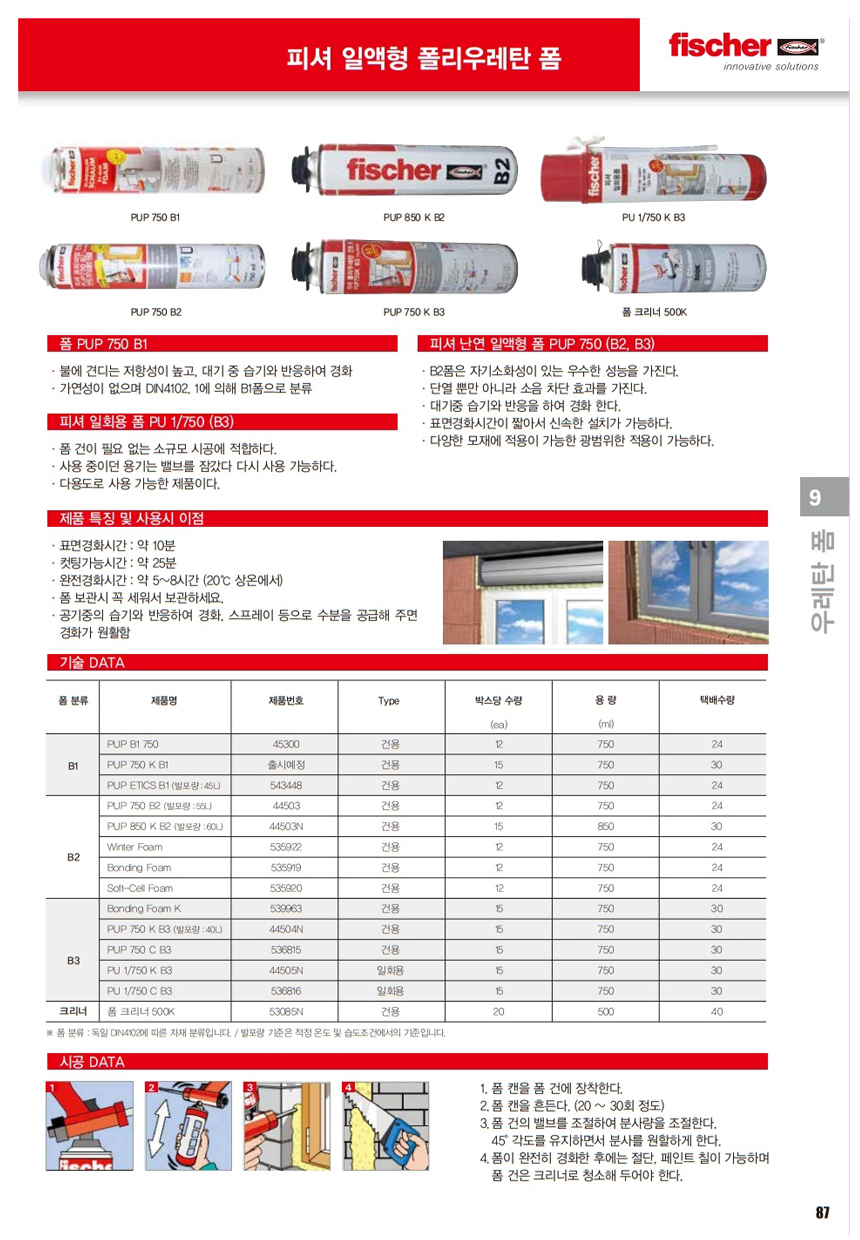 피셔 폴리우레탄폼(난연성) 건용/PUP 750 B1/ NO.45300 fischer, 공구몰 865-0342
