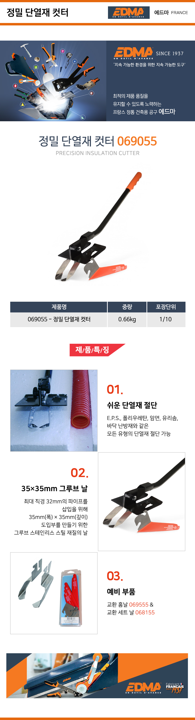 EDMA 단열재컷터(정밀) 069055 폭35mmx깊이35mm 에드마 공구몰