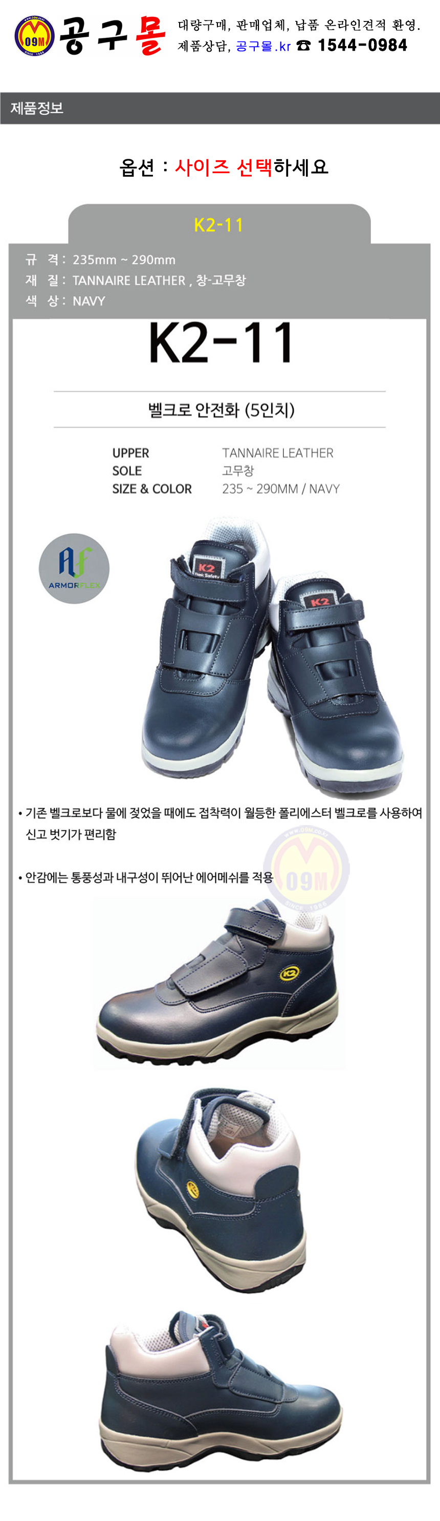 K2 안전화(5)125mm K2-11 (네이비, 235-290mm) 케이투코리아, 안전용품, 공구몰, W847-4256