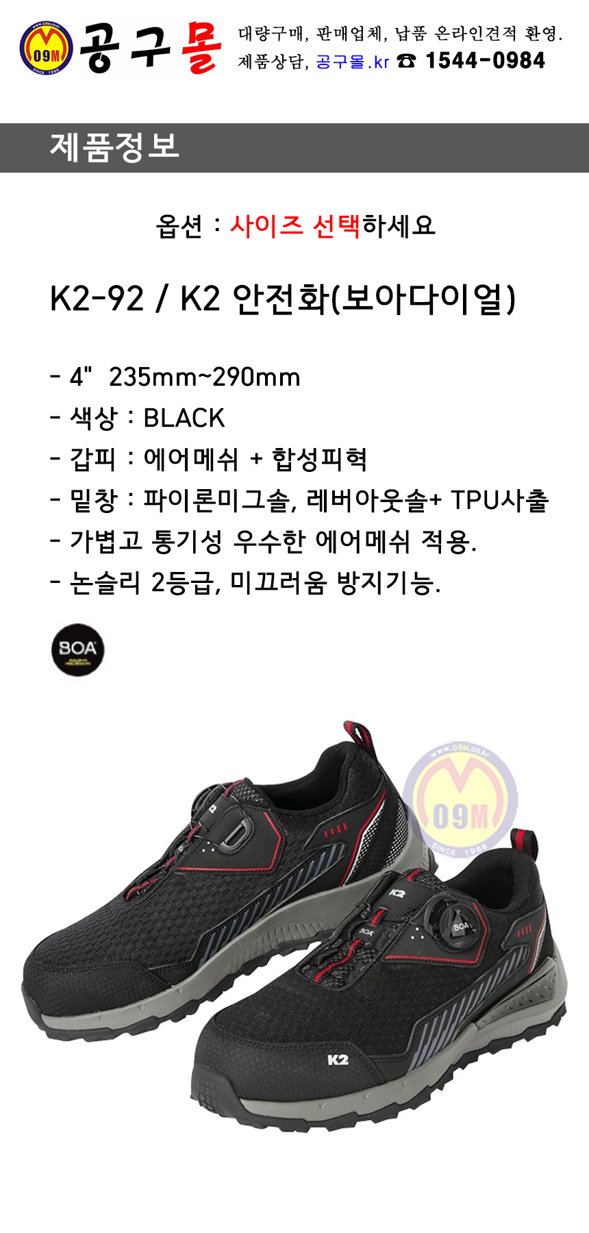 K2 안전화(4)100mm,다이얼) K2-92 (블랙, 235mm-290mm) 케이투코리아, 안전용품, 공구몰, W898-8351