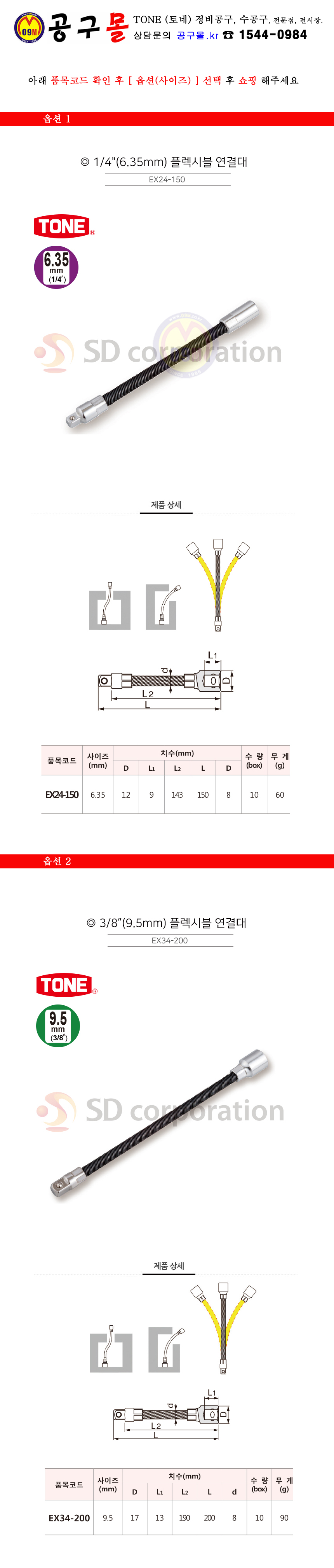 TONE 1/4,3/8 연결대 (플렉스타입) 토네, 공구몰, EX24-150,EX34-200