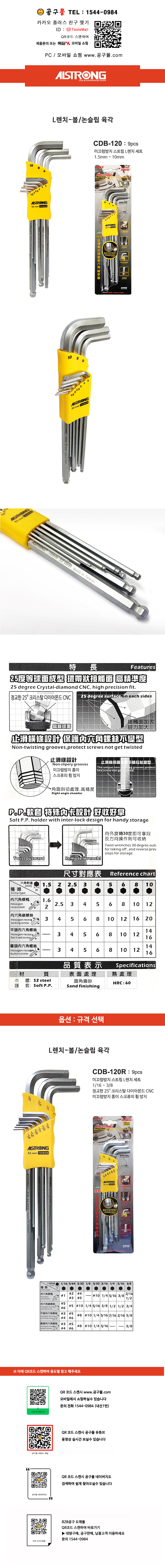 알스트롱 L렌치-볼/논슬립육각 CDB-120(mm)/120R(inch) (9pcs) ALSTRONG, CDB120/CDB120R-inch