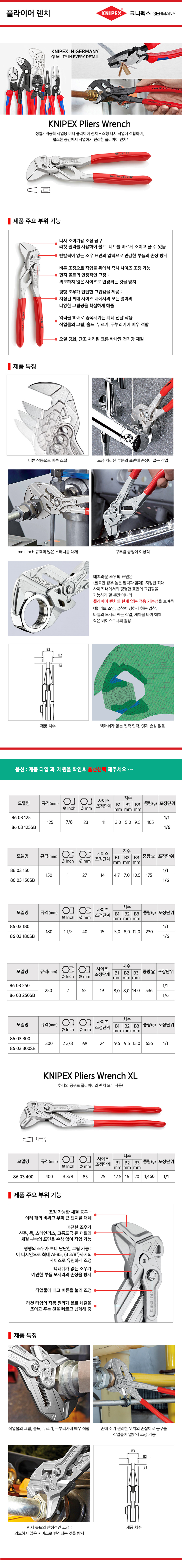 크니펙스 플라이어렌치 86-03-125SB, 150SB, 180SB, 250SB, Knipex 독일공구, 독일수공구 공구몰추천 101001020281