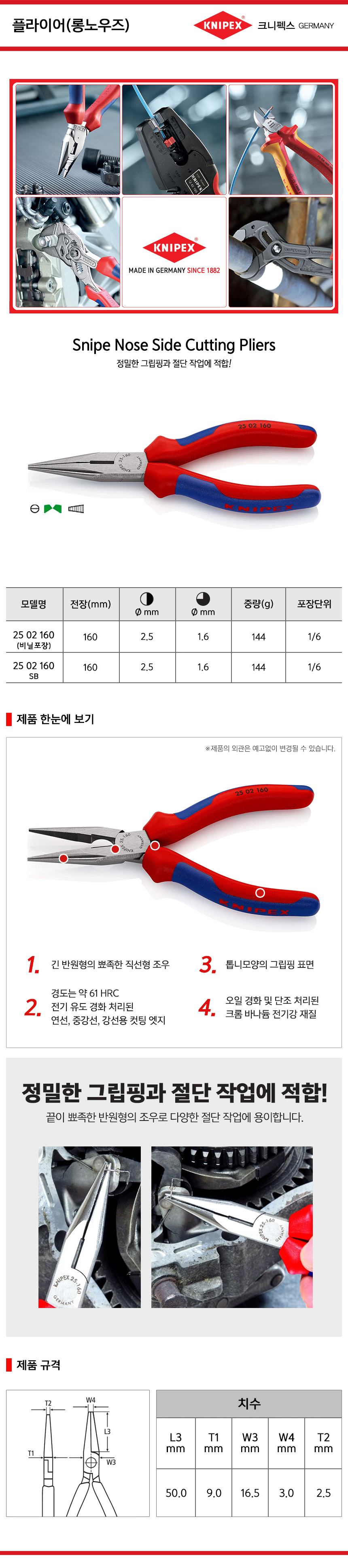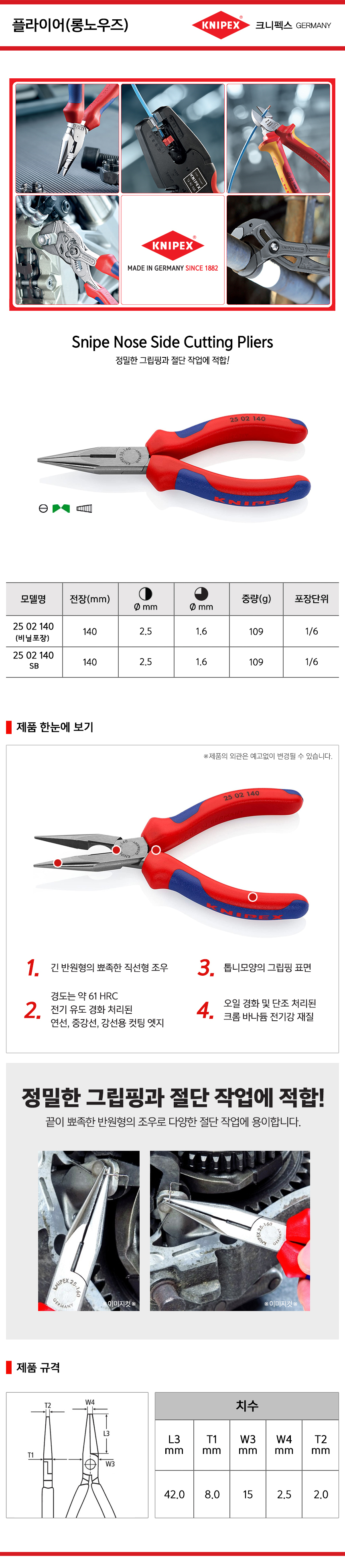 크니펙스 플라이어(롱노우즈) 25-02-140, 25-02-160 Knipex 롱로우즈 공구몰 101001020066