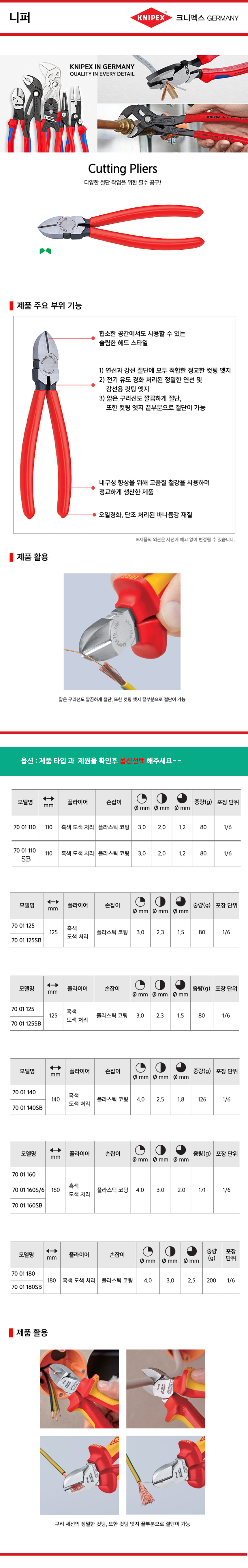 크니펙스 니퍼 70-01-110SB, 125SB, 140SB, 160SB, 180SB KNIPEX 독일공구, 수공구 작업공구 공구몰 101001000062