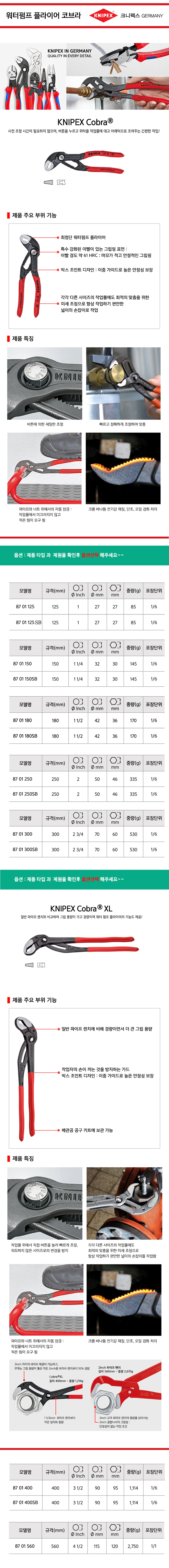 크니펙스 첼라(코브라) 87-01-125SB, 150SB, 180SB, 250SB, KNIPEX 독일공구 공구몰 101001020297