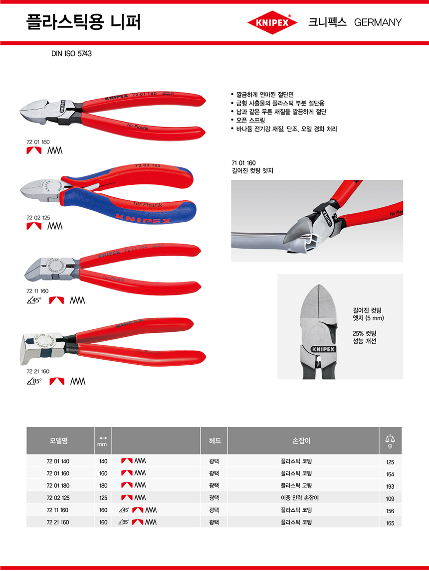 크니펙스 니퍼(플라스틱용) 72-01-160, 72-01-160SB Knipex 독일공구, 수공구 작업공구 공구몰 101001000117