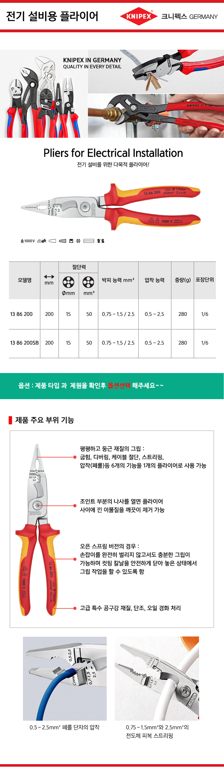 크니펙스 플라이어(만능,절연) 13-86-200, 13-86-200SB Knipex 독일공구, 독일수공구 공구몰추천 101001020019