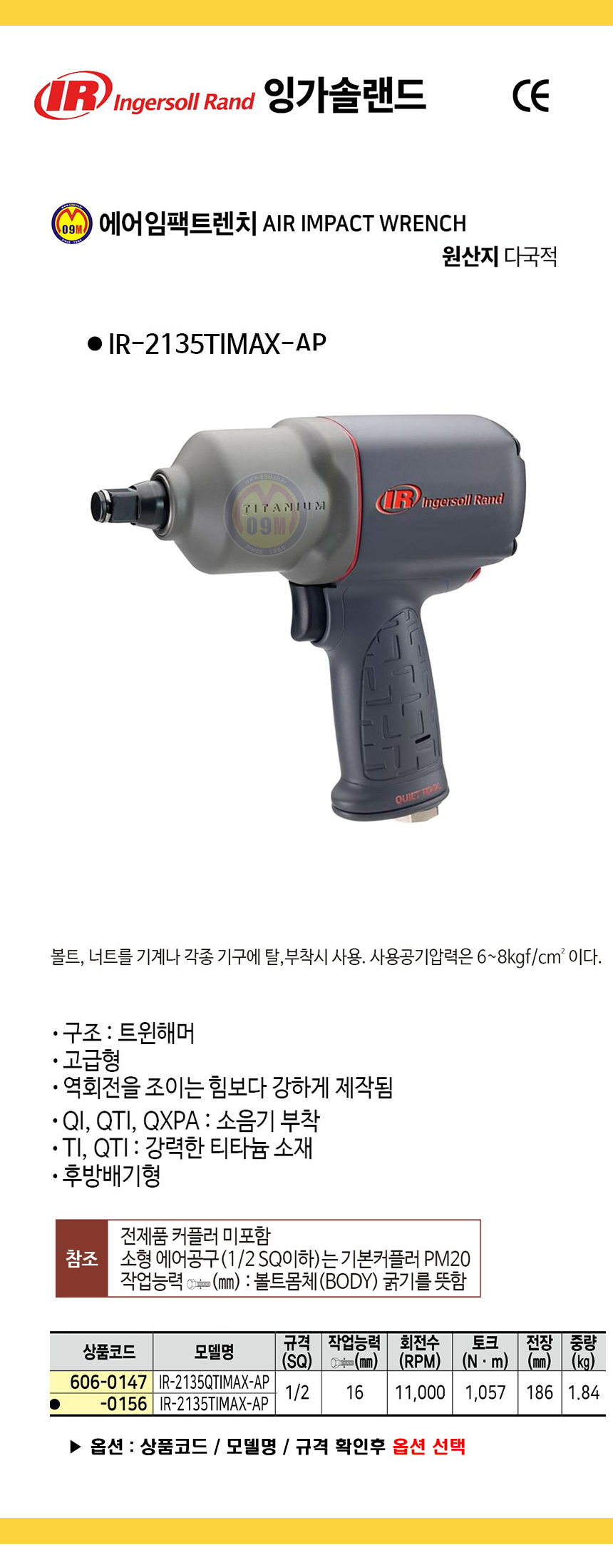 잉가솔랜드 에어임팩트렌치 IR-2135QTIMAX-AP, TIMAX-AP (1/2SQ) 에어렌치, INGERSOLL RAND 공구몰 추천 C606-0156