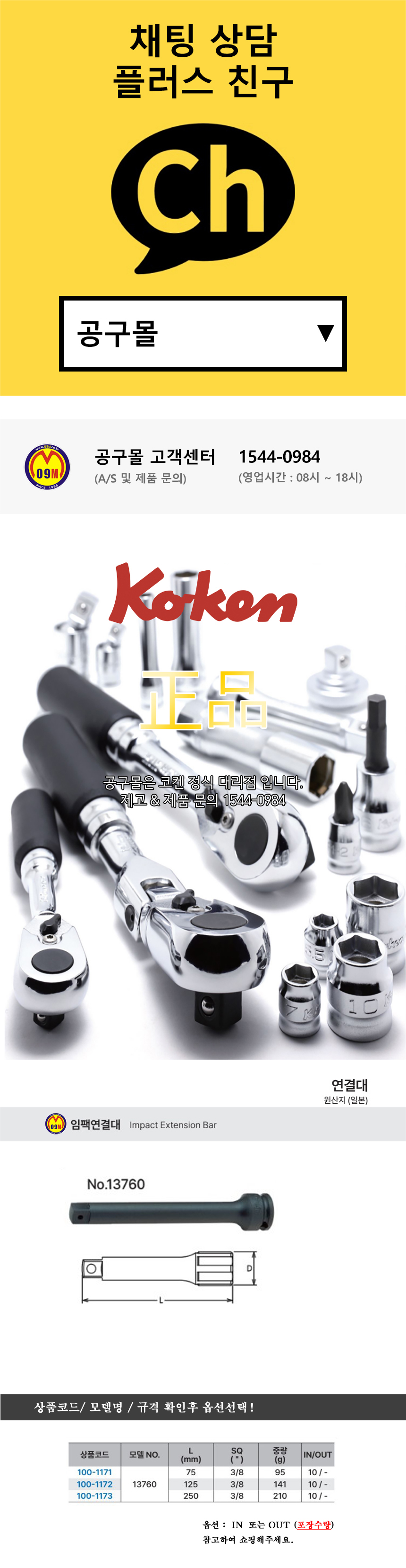코켄 임팩연결대 13760 3/8x75mm-250mm KOKEN impact Extension Bar 공구몰 100-1171