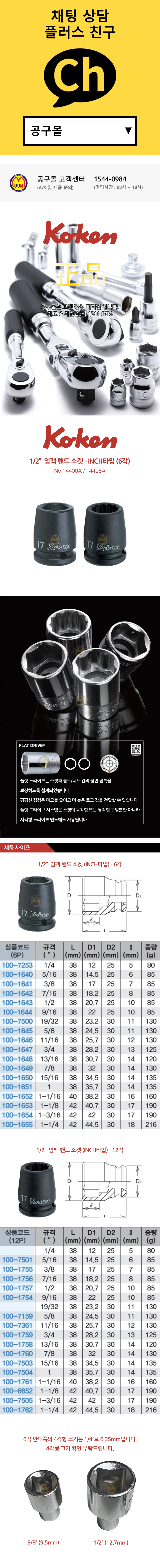 코켄 임팩소켓 14400A 14405A 1/2x(1INCH, 1-1/4) 6각 12각 임팩소켓 복스알