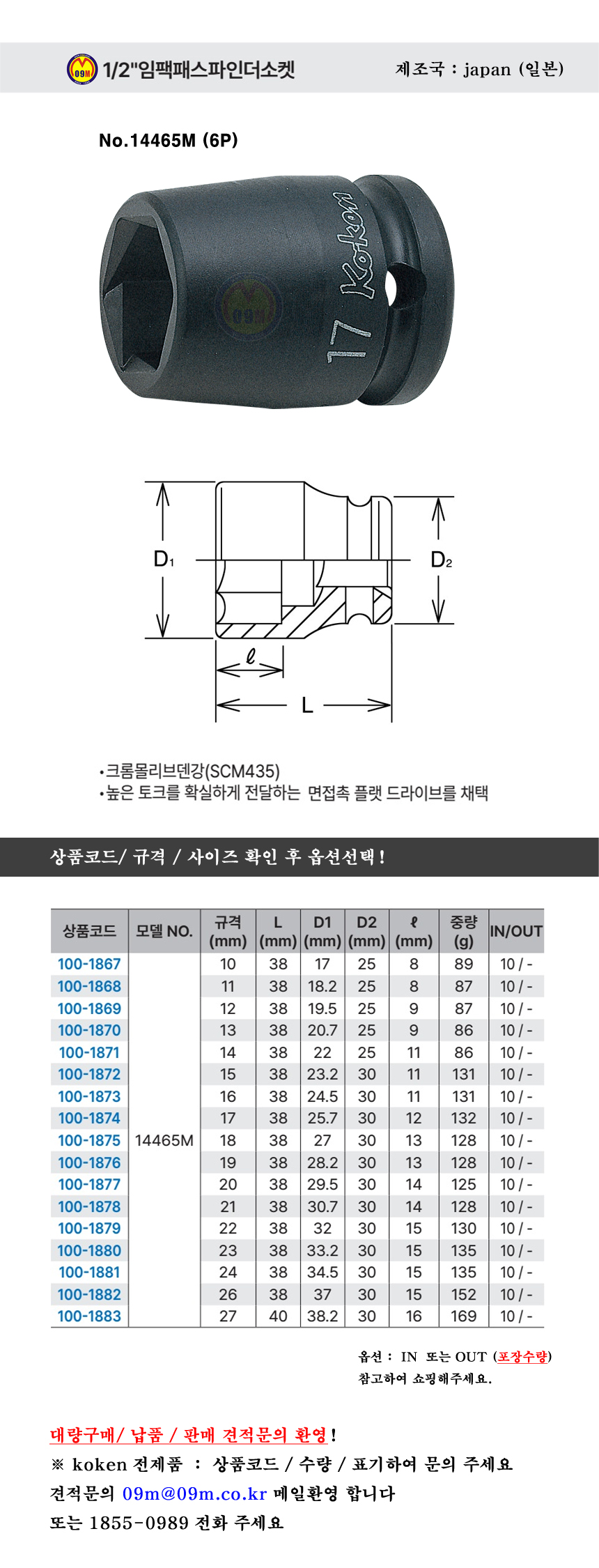 코켄 임팩소켓 14400M 14405M 1/2x(8-25mm) 6각/12각 임팩복스알